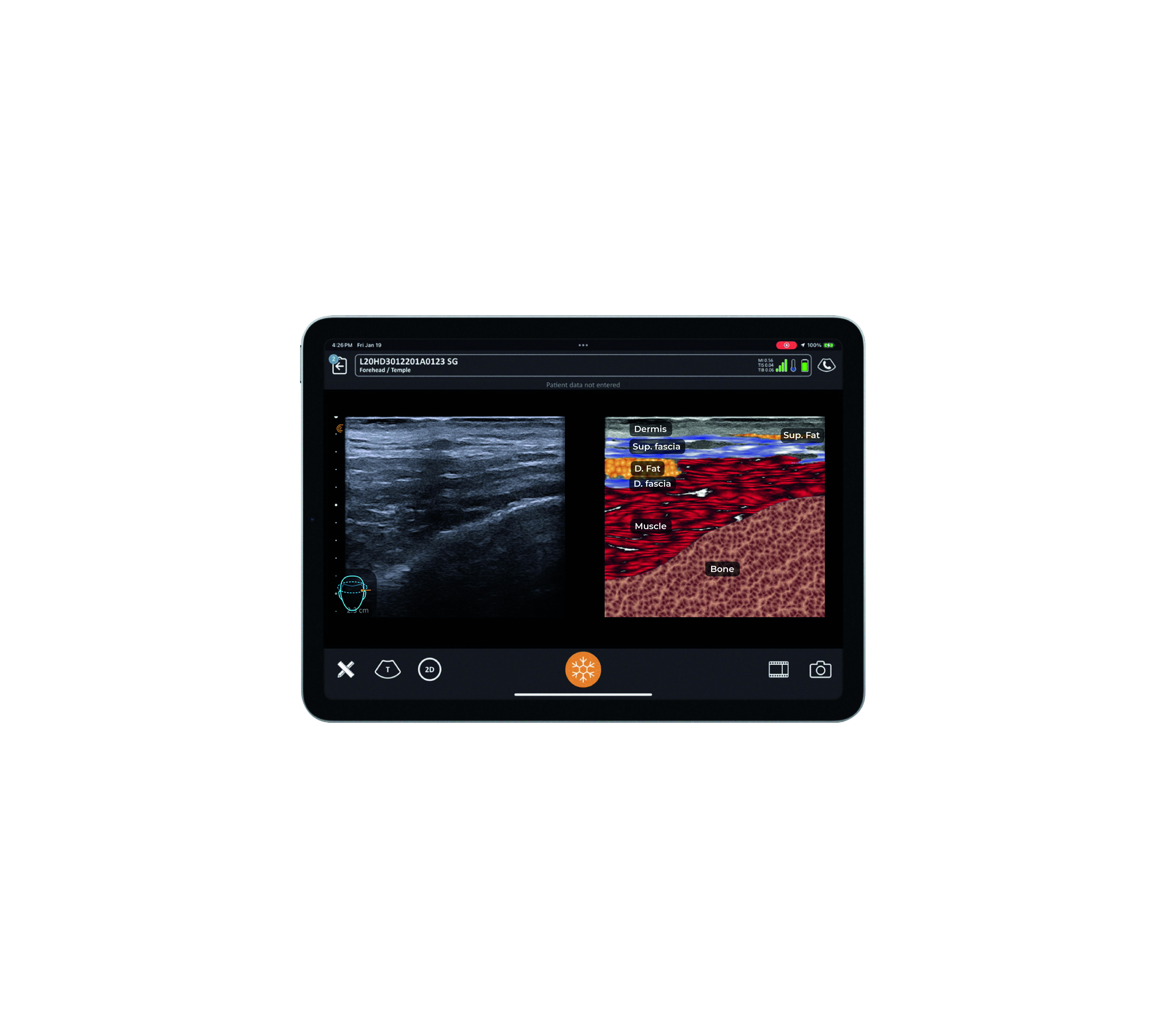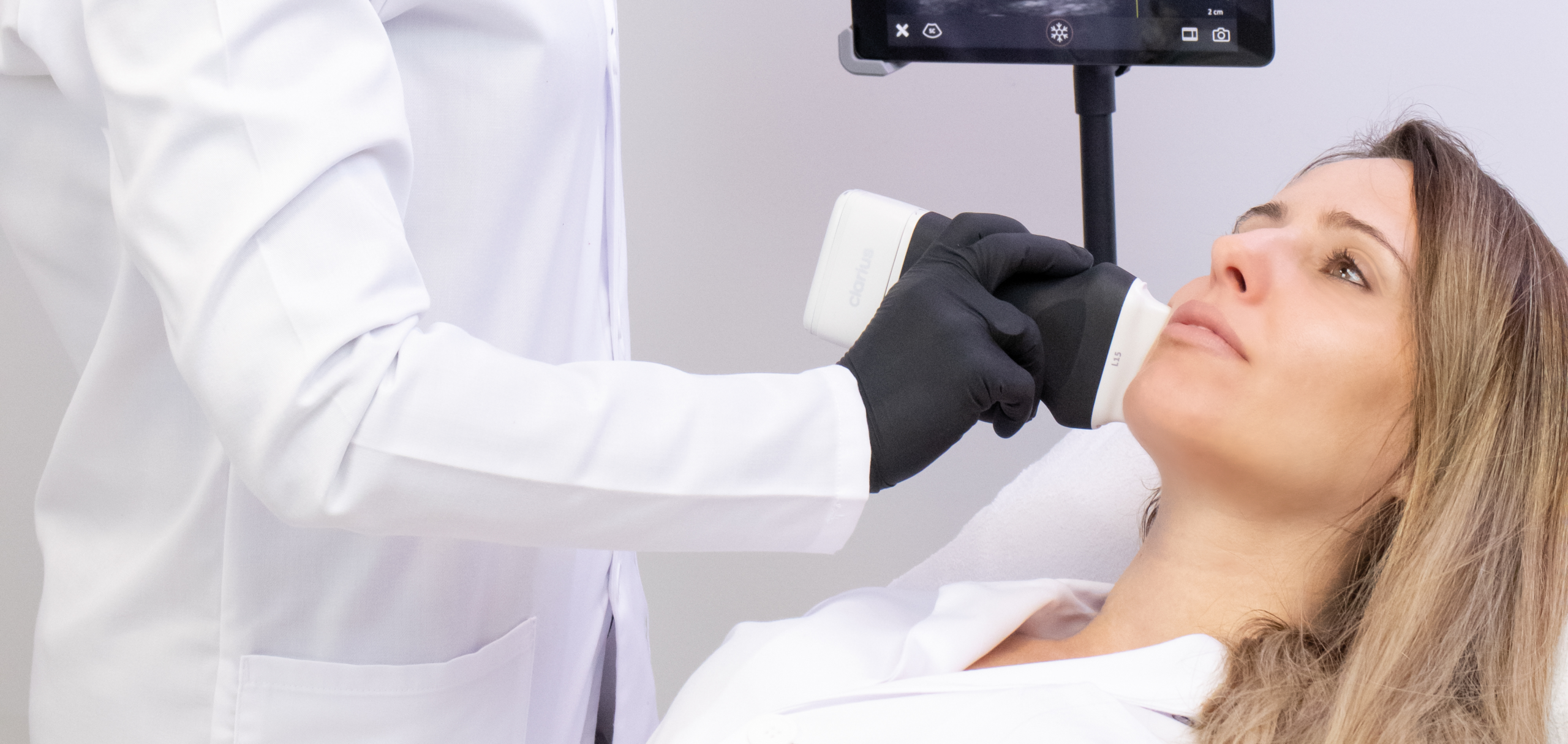 El Clarius 20 HD3 es un equipo de ultrasonido de alta frecuencia, alcanzando los 20 megahercios, lo que permite obtener imágenes de gran definición con una profundidad de hasta 4 cm. Su avanzada tecnología lo hace ideal para la evaluación detallada de estructuras faciales, proporcionando imágenes claras y precisas. Gracias a su precisión y calidad de imagen, es una herramienta imprescindible para especialidades médicas enfocadas en el rostro, como la cirugía oculoplástica, la cirugía plástica facial, la dermatología y la medicina estética.