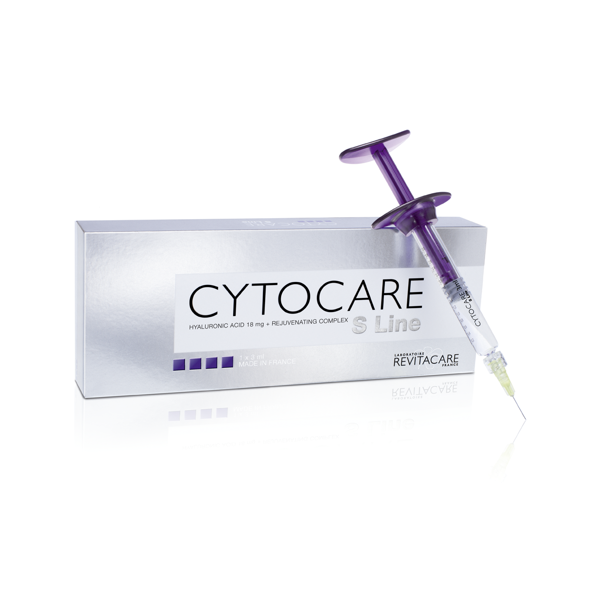 Cytocare S Line es dispositivo médico formulado a partir de ácido hialurónico no reticulado y el complejo rejuvenecedor CT50, que contiene 20 aminoácidos, 10 vitaminas y otros activos. Está especialmente diseñado para tratar y mejorar la calidad de la piel rellenando líneas de expresión, manteniendo la hidratación y restaurando la luminosidad de la piel.